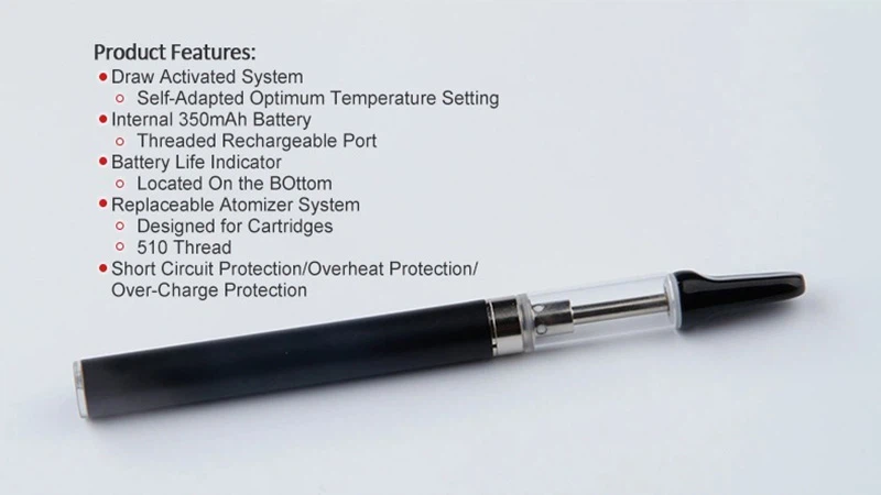 510 vape battery with Bottom charging has Pen Shape Design Pen shape design makes 510 battery convenient for personal carry. When using the same cartridge, 510 batteries are capable to provide 25% more vapor volume compared to other brands. It's made from stainless steel material, which gives your rich texture feeling when you hold in your hand.510 universal threading Small, thin and sleek design, Matte black rubber finish, Black base can be with oem LED Logo that glows during inhalation, Device is activated by inhaling from the cart (no button required) *10 second rip time. built-in 350mAh battery, rechargeable battery Bottom air channel makes vaping more easily and smoothly. What's more, which requires only 50 min charge time (shipped pre-charged at about 50%), 3.3-3.7 Operating Voltage, on battery body can be print logo.